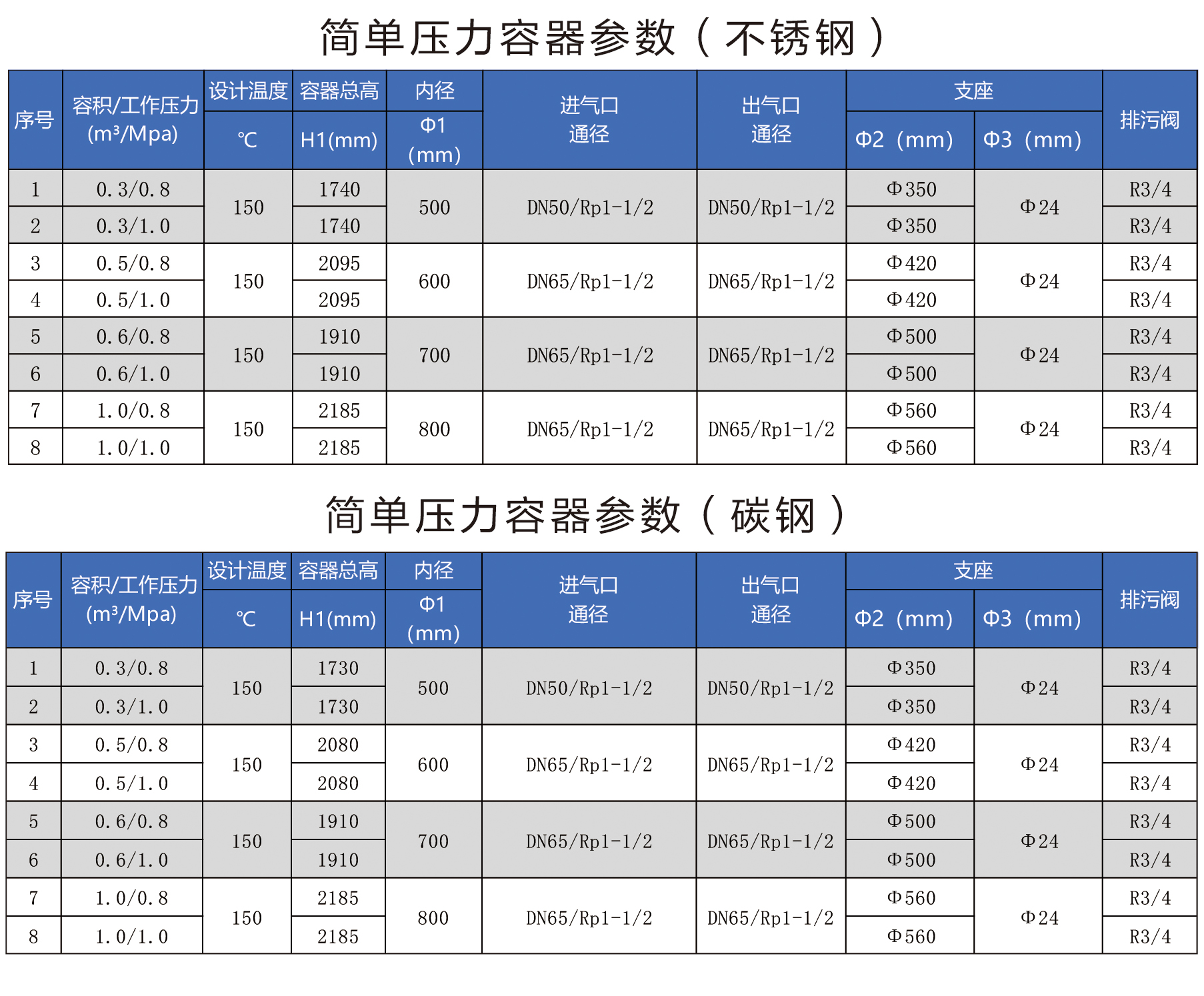 (二)筒體、封頭、接管等主要受壓(yā)元件的材料為碳素鋼、奧(ào)氏體不鏽鋼;