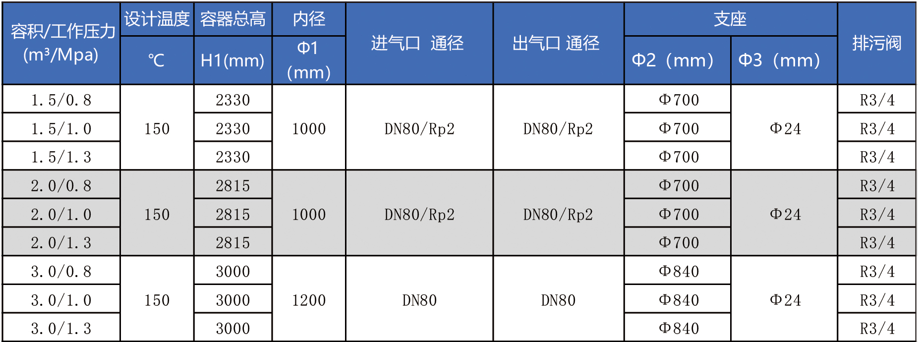 其中儲氣罐在使用壓縮氣體的工廠裏可(kě)用來儲存壓(yā)縮空氣,保(bǎo)證(zhèng)用氣高峰時的要求;用來穩定(dìng)氣源壓(yā)力並起到緩衝作用;冷卻空氣中的水分及汙物等並(bìng)使(shǐ)其從係統中排出;消除(chú)或削弱活塞式空氣壓縮機排氣(qì)的周期電流脈動,穩(wěn)定管道中的壓力,並可在停機後短時間內(nèi)供應管線完成必要的啟(qǐ)動操作程序。